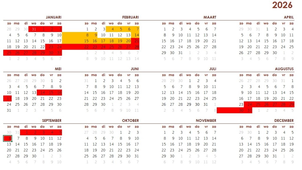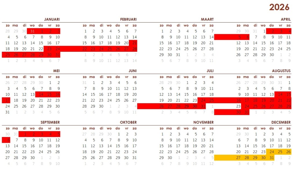Agenda Rood = BezetOranje = in optieVoor reserveringen kunt u het contact formulier invullen. Dit delen: Delen op X (Opent in een nieuw venster) X Share op Facebook (Opent in een nieuw venster) Facebook Vind-ik-leuk Aan het laden...